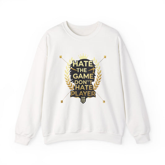 Crewneck Sweatshirt "Hate the Game, Don’t Hate the Player" – Gamer Motto Pullover