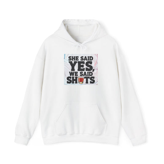 Bachelorette Hoodie — “She Said Yes, We Said Shots” Bridal Party Pullover
