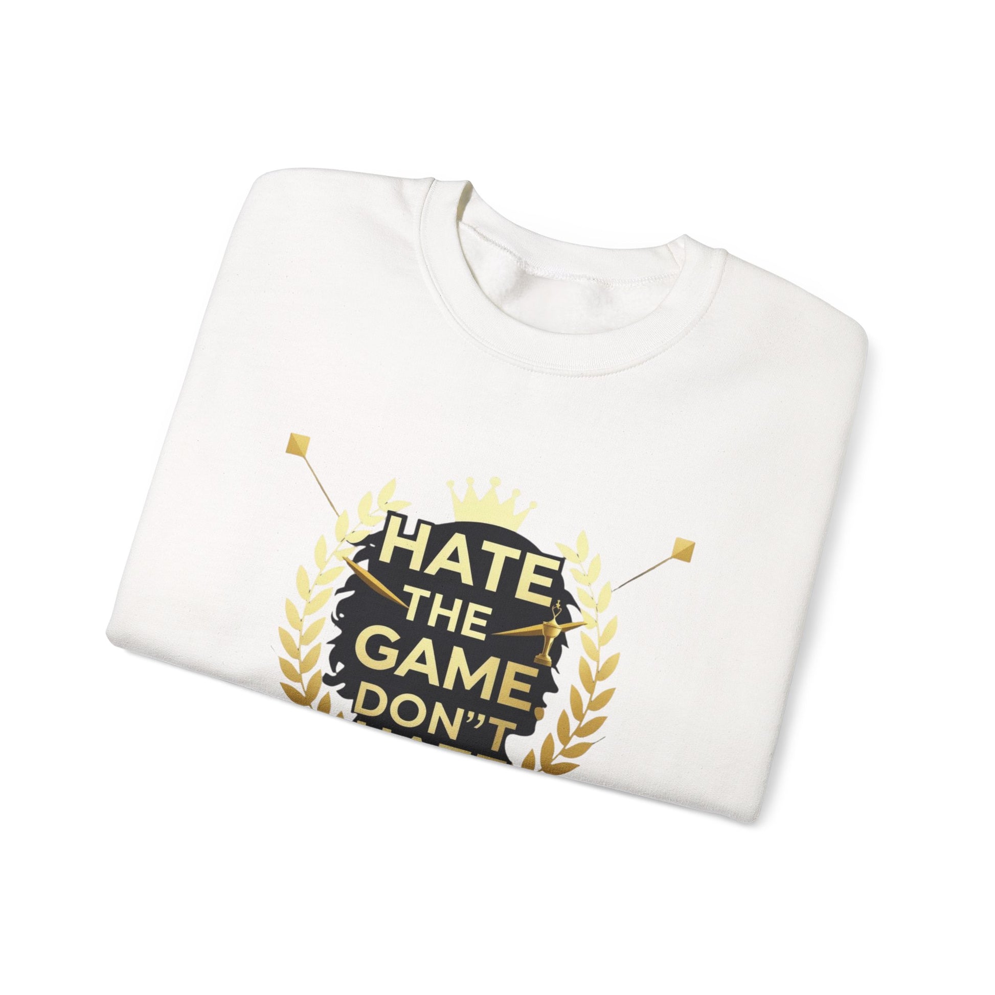 Crewneck Sweatshirt "Hate the Game, Don’t Hate the Player" – Gamer Motto Pullover